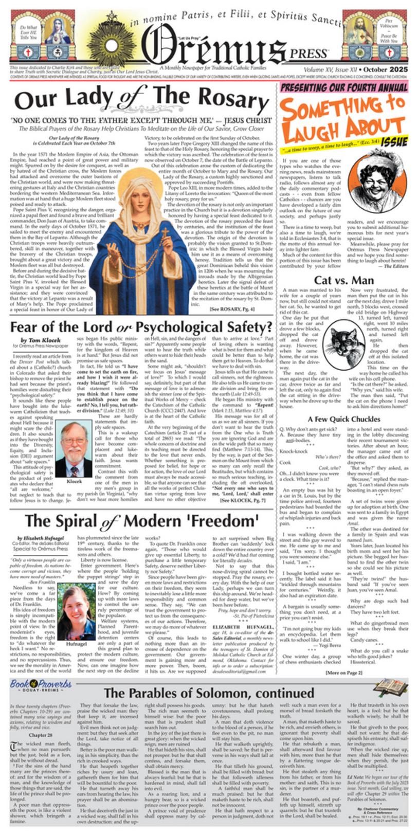 Since January 2025, we at Orémus Press Newspaper have opted to step away from all social media, which unfortunately has become little more than an echo chamber for ridiculous conspiracy theories, unhinged ranting, uncharitable finger-pointing and distrust of everything under the sun. We do still welcome messages, emails and postal mail. May God bless you and yours!